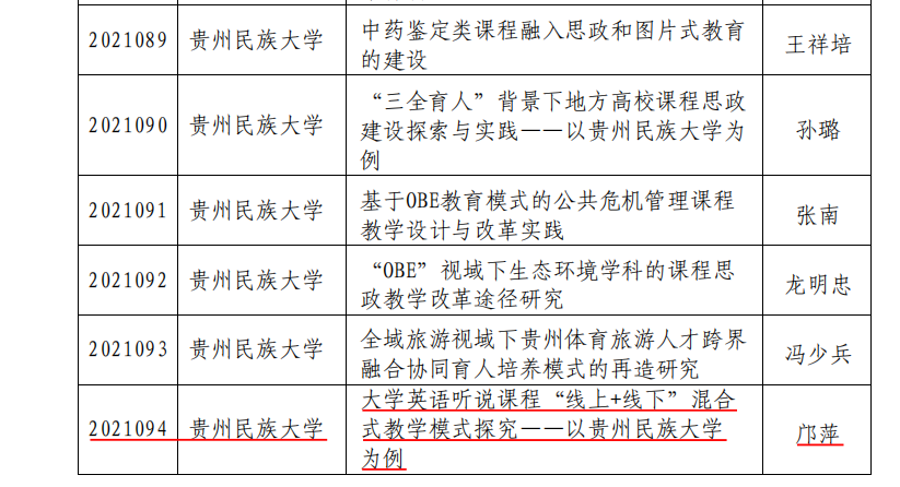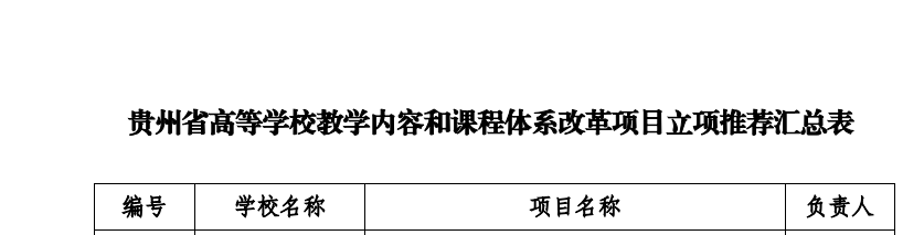 贵州省高等学校教学内容和课程体系改革项目立项推荐汇总表
