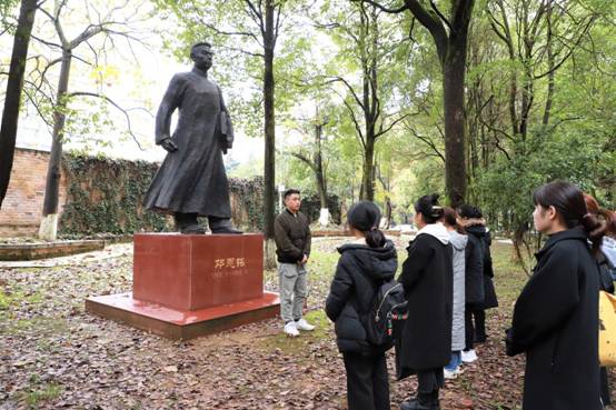 10月27日中午12点,437必赢国际线路组织了第十期发展对象培训班的全体学员及此次指导老师副处级组织委员邓维赢同志参观瞻仰革命先烈邓恩铭烈士雕像。