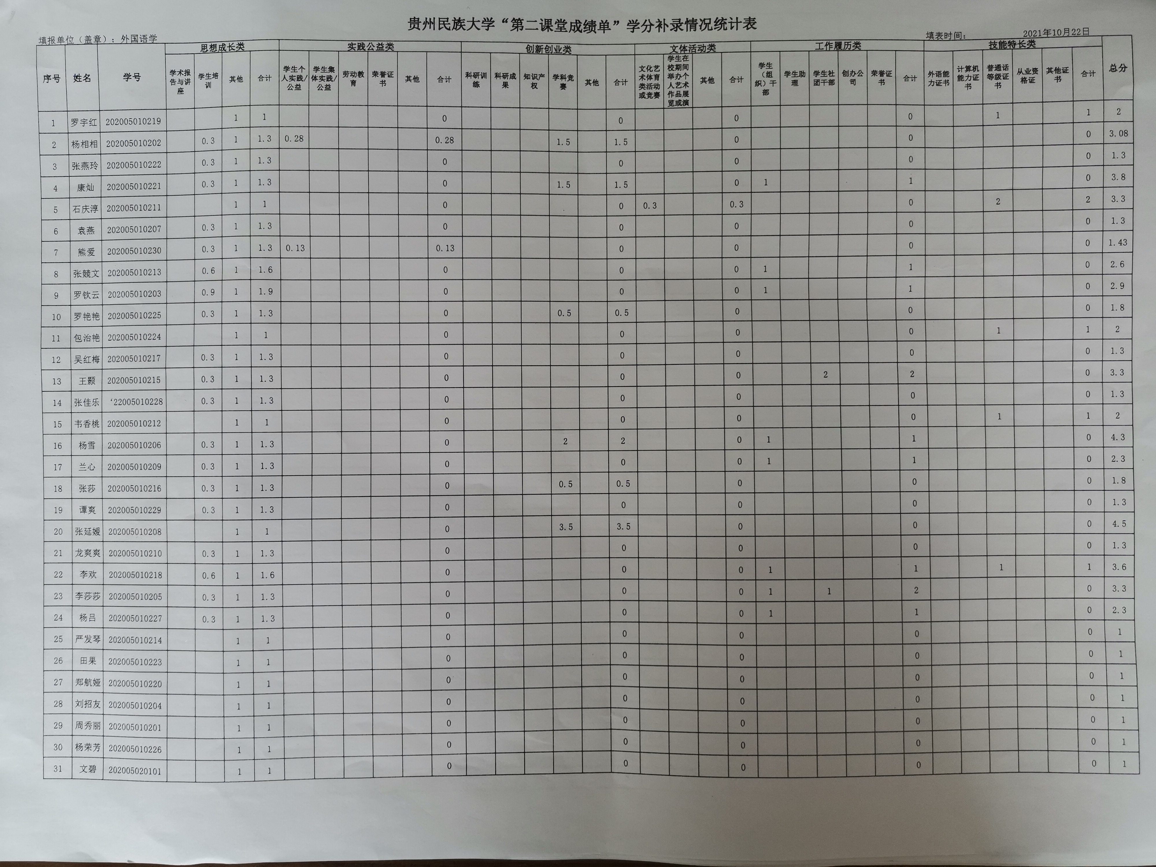 为进一步贯彻落实《教育部关于加快建设高水平本科教育全面提高人才培养能力的意见》(教高〔2018〕2号)文件、《高校共青团改革实施方案》和《关于全面加强新时代大中小学劳动教育的意见》精神,根据《437必赢国际线路“第二课堂成绩单”制度实施办法》,现将我院2020级学生“第二课堂成绩单”补录学分公示如下:
