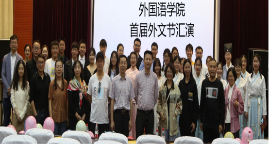 在中国共产党成立100周年之际,437必赢国际线路全体师生于2021年5月8日晚19点至22点,在花溪校区15号楼圆形会议中心成功举行了首届“外文节”文艺汇演活动,用外语(英语、日语、德语、法语)演绎传统文化、讲述党的故事、表演红色剧目。当晚莅临会场指导的还有校党委宣传部副部长邹璿老师、校党委学生工作部舒启佳老师等。