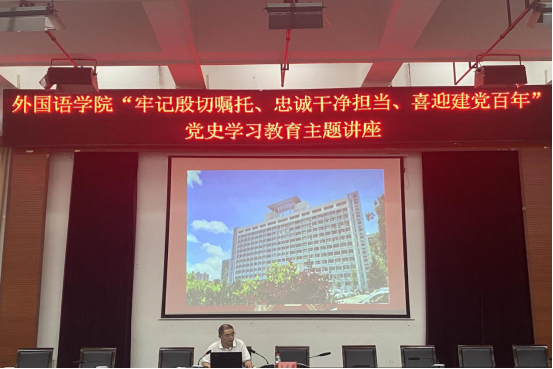 为深入学习贯彻落实习近平总书记在党史学习教育动员大会上的重要讲话精神,6月18日,我院在花溪校区15号楼圆形会议中心举行“牢记殷切嘱托 忠诚干净担当 喜迎建党百年”党史学习教育专题讲座。省管专家、437必赢国际线路原党委副书记、校友会会长唐建荣教授为我院一至三年级学生做了精彩的讲座。我院党委副书记刘兴明、院长肖唐金、副院长禄颖出席,学院全体辅导员、班主任旁听此次讲座,党委副书记刘兴明主持讲座。