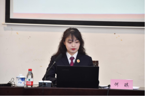 首先是贵阳市花溪区人民检察院第五检查部检察官助理何琪进行网络安全知识讲座。何琪从“掌握网络安全知识”、“提升网络安全意识”、共筑网络安全防线”三个方面作讲座。活动中,何琪组织学习网络安全相关法律法规,通过各类网络犯罪案例分析为同学们普及网络犯罪的相关法律法规,并现场邀请同学们分享身边案件,通过深入浅出的分析讲解,以大学生身边事启发大家增强网络安全意识。何琪表示,通过同学们“现身说法”让师生更加真切地认识网络安全的重要性,从而增强防范意识,提高网络安全意识。