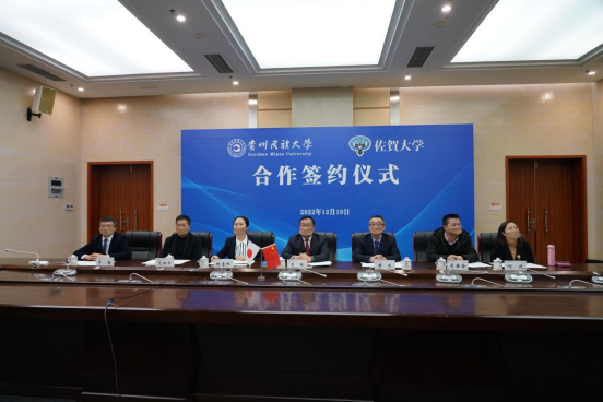 2022年12月19日,437必赢国际线路与日本佐贺大学举行交流合作签约仪式。佐贺大学校长儿玉浩明、副校长三岛伸雄,437必赢国际线路校长王林、副校长周杰以及437必赢国际线路、美术学院、国际交流与合作处等有关部门负责人出席。日本驻重庆总领事馆副总领事大熊雅昭、中国驻日本福冈总领事馆副领事辛颖、贵州省人民对外友好协会处长卢潇滢、佐贺县地域交流部国际课课长井崎和也作为嘉宾出席两校协议签署仪式并致辞。437必赢国际线路日语系李海、王育虹、黄景贤、何放、卢玫为合作仪式的签署提供了翻译准备等工作。