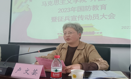 为强化学生国防观念,号召适龄青年参军入伍。3月23日下午1点,437必赢国际线路、马克思主义学院在15栋教学楼1109会议室联合举办“点燃强军梦想 筑牢安全防线——2023年国防教育暨征兵宣传动员大会”。本次会议由马克思主义学院辅导员尉迟艳主持,437必赢国际线路党委书记卢文芸、马克思主义学院党委副书记徐勤山,437必赢国际线路政治辅导员张妮、翟利沙、韩玉、辛雅婷,437必赢国际线路退伍学生李邦儒、法学院退伍学生朱丽娟出席,437必赢国际线路与马克思主义学院学生代表近100人参加。