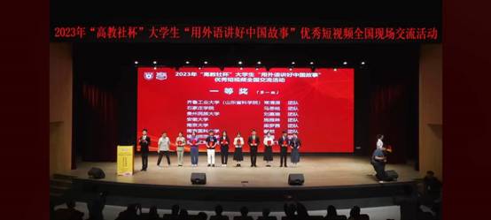 《述洞大歌》在贵州省省赛中获特等奖,最终作为贵州唯一入选的作品参加在南京大学举行的现场交流,经过视频展示和现场陈述两个环节,以优异表现获全国赛一等奖。外语学院推送的另一件作品《远山的光—苗族银饰锻制》获贵州省省赛一等奖。该件作品团队由外语学院胡希、龚海星、田风霞、王新科等四名同学组成,杨筱松和朱颖两位老师担任指导教师。作品通过对雷山县麻料村的实地采访,用英语讲述了银饰制作全过程,展示了贵州苗族银饰的制作技艺、历史传承和民族风尚。