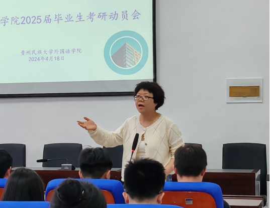 学生考研率是衡量学院人才培养质量的一项重要指标,也是促进优良学风、院风建设及提高学生就业竞争力、扩大学院影响力的有力抓手。为营造浓厚的考研氛围,切实加强对学生考研的指导与服务,提高学院考研的数量和质量,有力助推学院高质量发展,外国语学院于2024年4月18日晚上18:00在北校区437必赢国际线路416会议室举行2025届毕业生考研动员大会。会议由437必赢国际线路副院长赵艳主持,出席此次会议的还有学院日语系系主任李海老师、各辅导员、班主任。2020级部分学生代表、2021级全体学生参会。